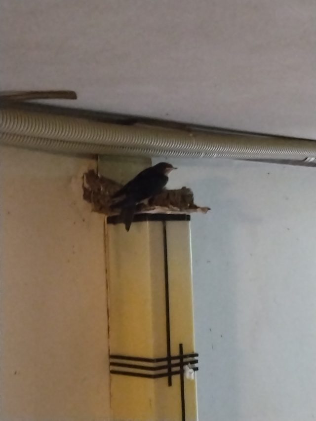 まぁ、こんなところに作らなくてもと思う。高いところだからハチの巣の出入りはわかるが下まで降りてこない。少し安心。